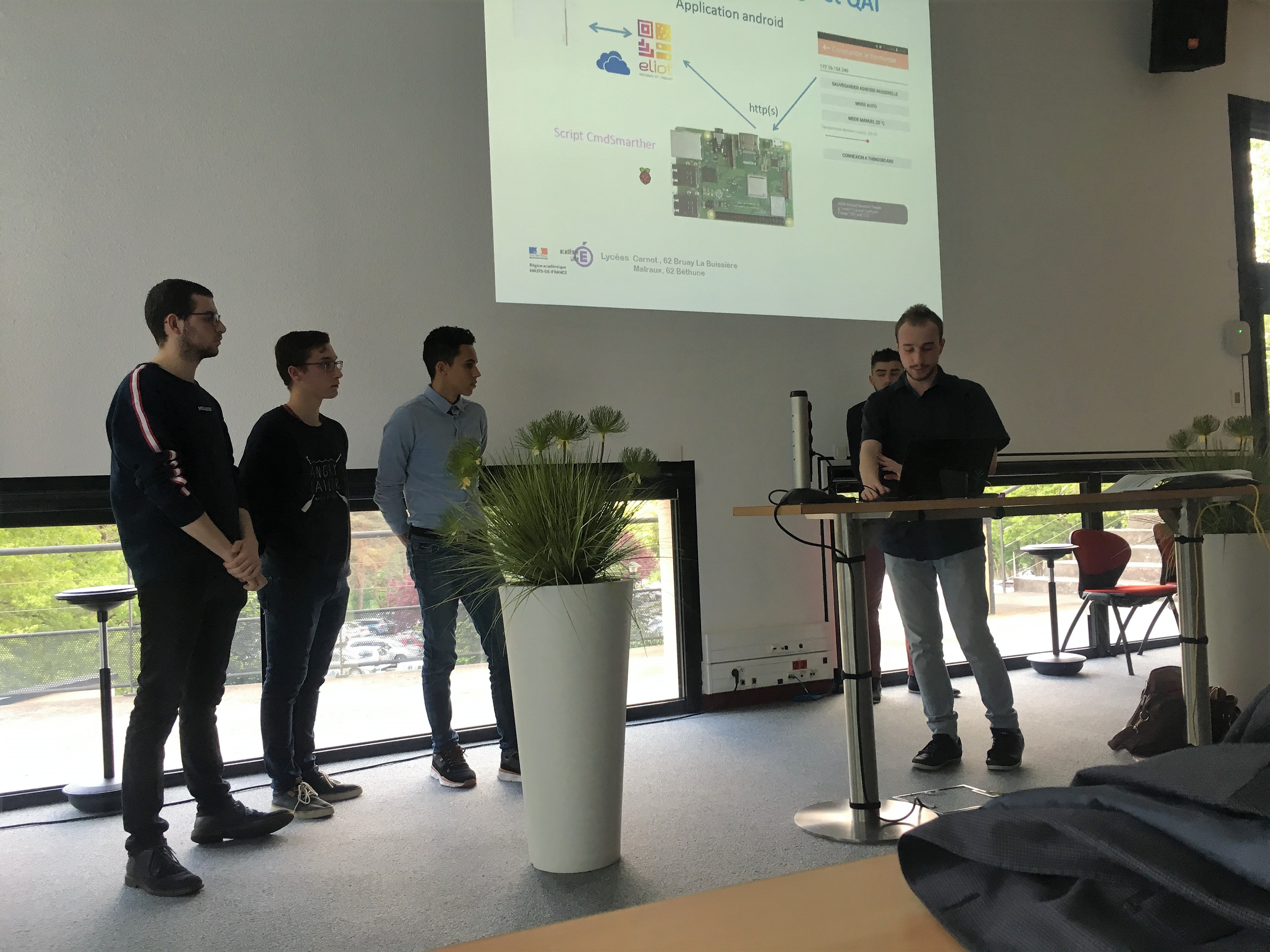 Ce mercredi 22 mai, les étudiants de BTS SNIR (systèmes numériques option informatique et réseau) du lycée Malraux de Béthune et SNEC (systèmes numériques option électronique et communication) du lycée Carnot de Bruay-la-Buissière ont remporté le prix du Challenge Legrand qui se tenait à Limoges. Le projet présenté par les étudiants répondait parfaitement au désir d’améliorer le bien être et les conditions de vie des habitants en utilisant les objets connectés, sans fil et la technologie moderne
