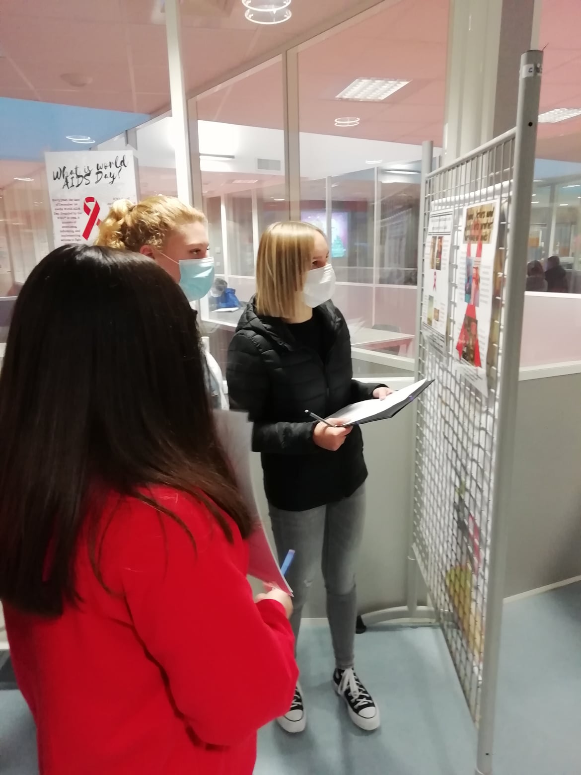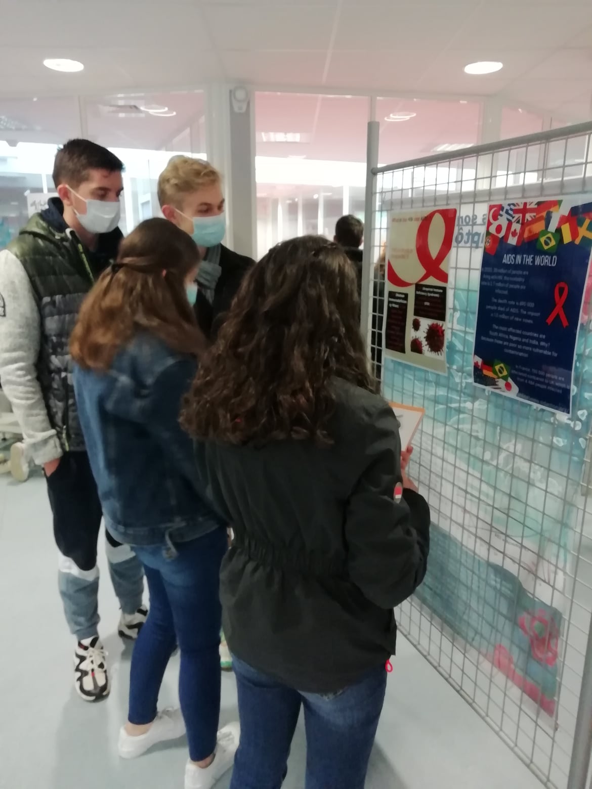 Le mercredi 1er décembre, journée mondiale de lutte contre le SIDA, les élèves de Terminale ST2S ont organisé des actions de sensibilisation au sein de l'établissement. Vous avez été nombreux à acheter les rubans rouges qu'elles avaient confectionnés et 4 classes ont pu profiter des activités que nous vous proposions au CDI. Madame LOOTEN, infirmière scolaire était présente pour échanger avec les élèves et leur apporter de nombreux conseils. Les élèves ont également réussi à répondre au questionnaire réalisé à partir des affiches des TST2S et tout cela ... en anglais !